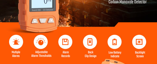 Guard-566 CO monitor includes a high-accuracy DDS sensor, providing precise measurements with a rapid 0.5s response time. It features audible, visual, and vibration alarms for conveying crucial alerts in diverse settings